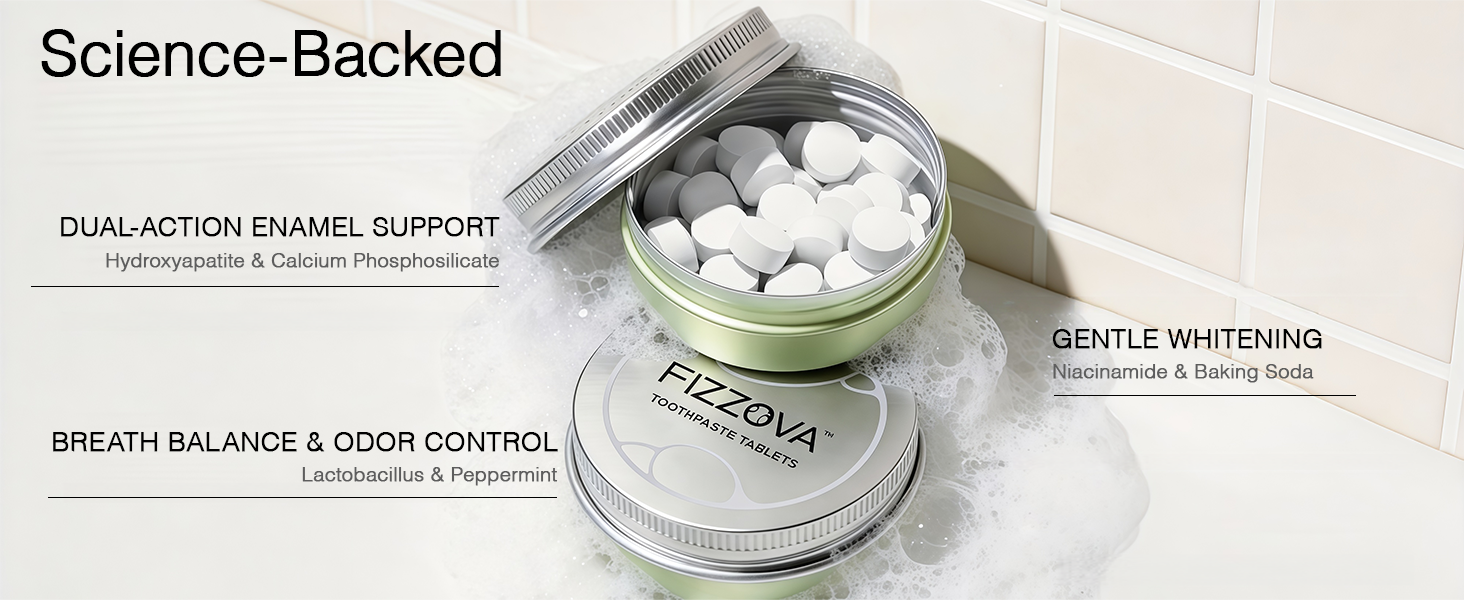 Transform your daily oral care routine with FIZZOVA Toothpaste Tablets. Engineered for modern, eco-conscious ...